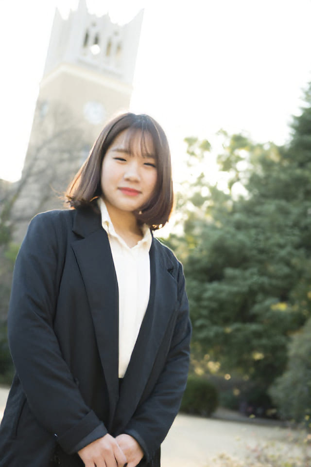 私は韓国では受けられない多様な学びや経験を求めて日本への留学を決意しました。高校2年生の修学旅行で日本を訪れたとき、当時在籍していた高校の姉妹校である名古屋市立名東高校で体験授業を受け、日本の学習環境に強く惹かれたことがきっかけです。日本に行ったら、平日は勉強に集中し、休日には趣味の映画・演劇鑑賞などを通して日本文化をたくさん吸収したいと考えていました。そのためには経済的な備えも欠かせません。そこで、進学先を選ぶ上で奨学金も重要な検討材料にしました。早稲田大学には外国人留学生向けの奨学金が豊富にあると知り、留学して学業に打ち込むのに相応しい環境だと感じました。